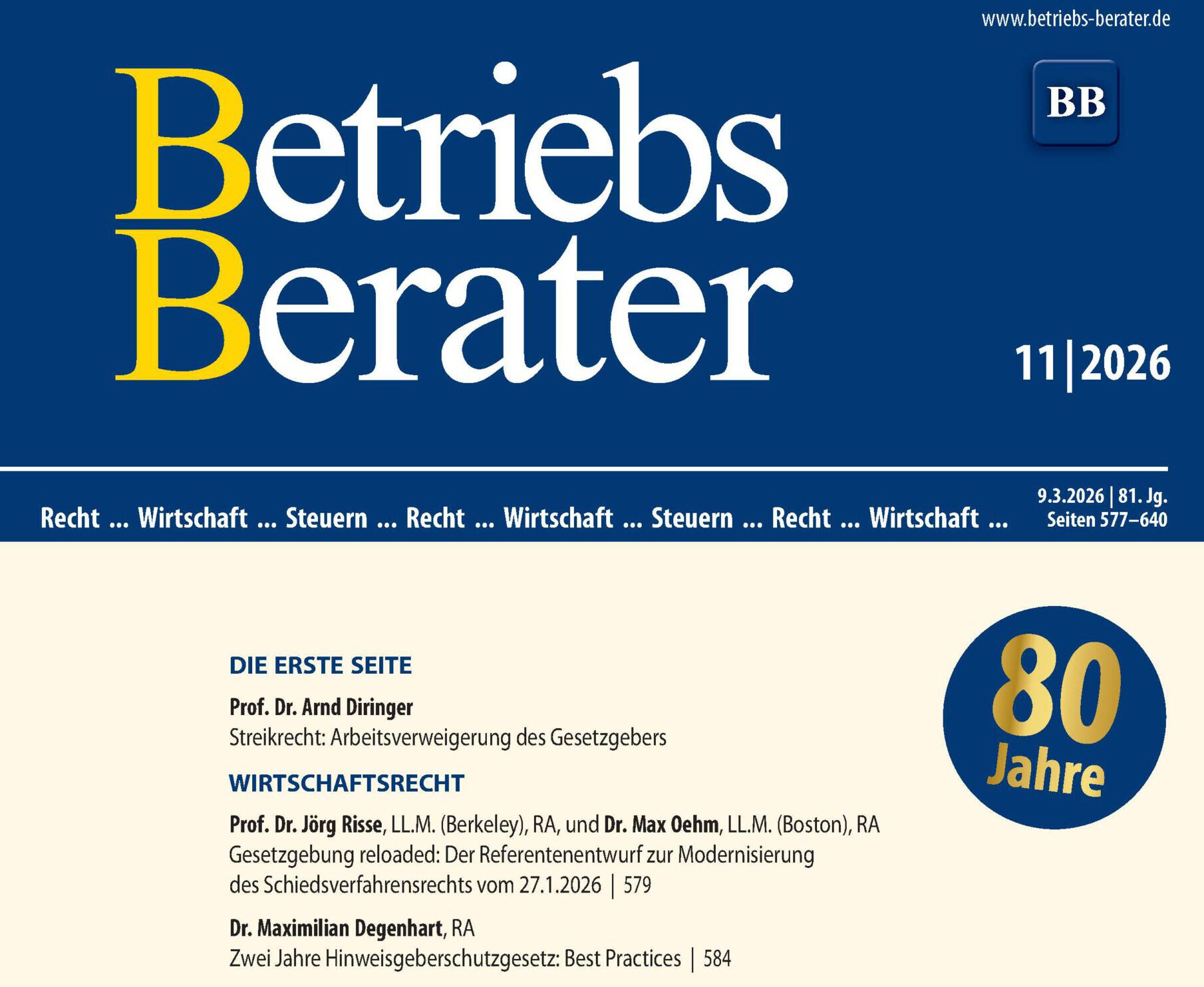 Den Beitrag in der aktuellen Ausgabe des Betriebs-Betraters (11/2026) können Sie über folgendenen Link abrufen.